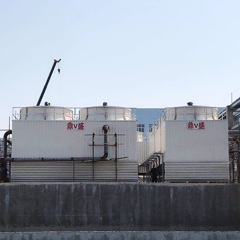湖北世宜居建筑公司400噸方形冷卻塔安裝完畢,400噸方形冷卻塔由2個200噸方形冷卻塔并聯在一起。