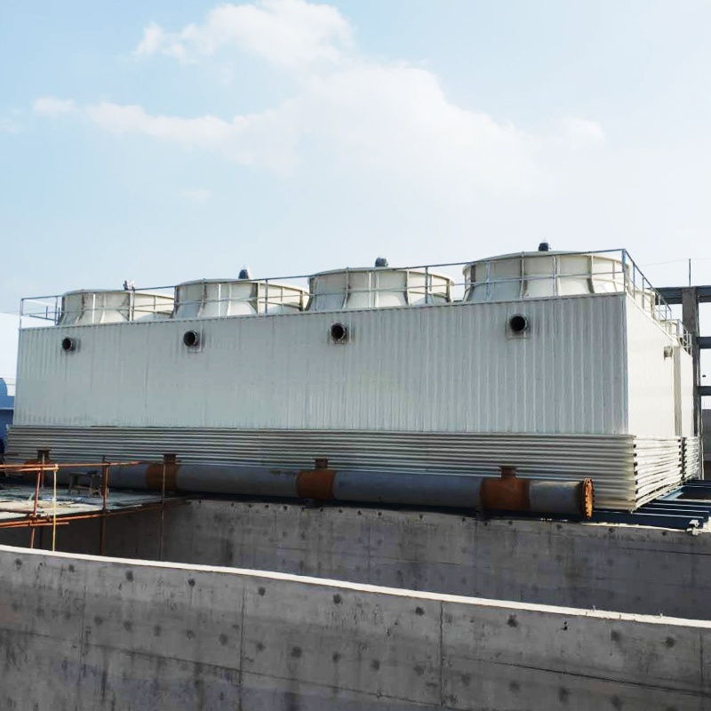 本系列方形逆流式冷卻塔采用逆流式氣熱交換技術,使冷空氣從冷卻塔底部進風,逆流往上進入填料層,實現熱交換帶著熱量。主體采用全鋼結構,玻璃鋼護板,塔體設檢修扶梯供塔頂設備的正常維護管理。采用S波紋填料,改性PVC材料,特殊構造的流水膜以擴散淋水面積;通過噴淋管道和噴頭散濺式的布水方式,實現布水均勻,加大散熱量,增強冷卻效果。