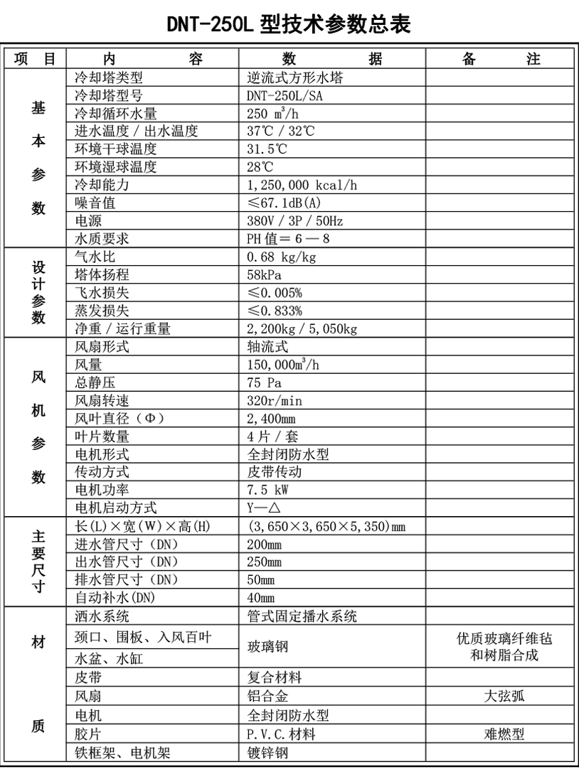 是采用防水、防潮、耐腐蝕的專用Y系列戶外型冷卻塔電機,密封性好,廣泛適用于各種條件下的冷卻塔環境。絕緣等級為F級,防護等級達到IP55,電機工作電壓為380V,額定頻率為50Hz。